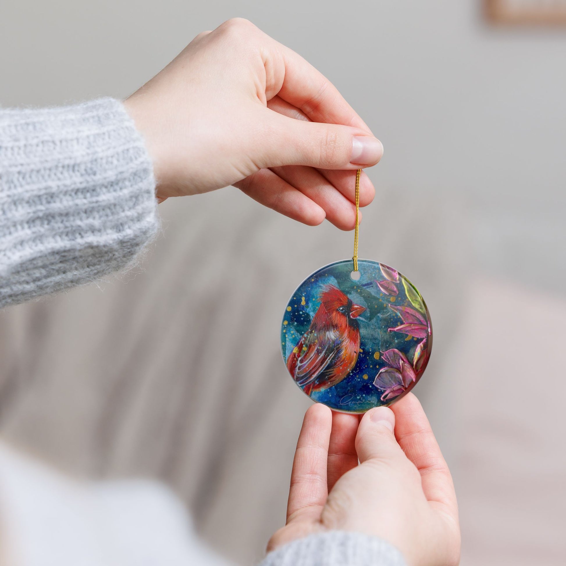 Beautiful ceramic ornaments featuring a Cardinal song design. Perfect for adding a touch of nature and music to your holiday decor. Ideal for bird lovers and those who appreciate the beauty of nature. Great for Christmas, winter celebrations, and birdwatchers.