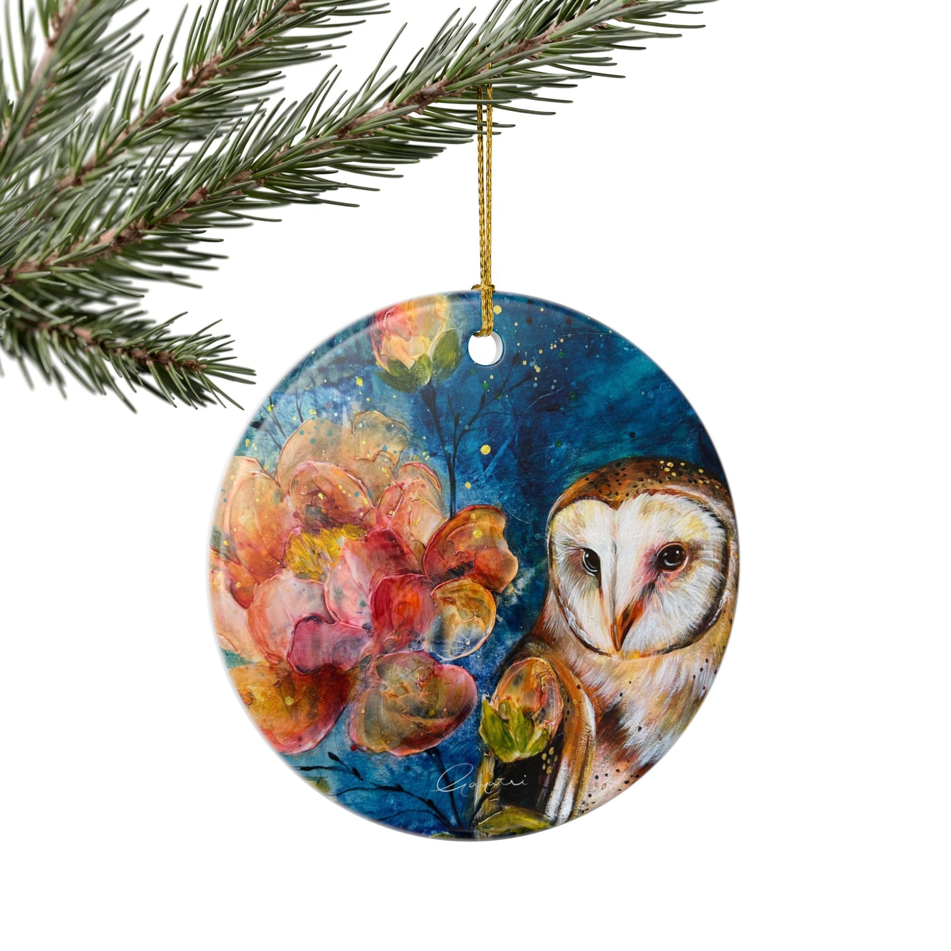 This beautiful Owl ornament printed from original art adds an elegant touch to your holiday decor. A perfect gift for art lovers, relevant for Christmas, birthdays, and special occasions. Fits well on any festive tree or as a decorative item around the house.